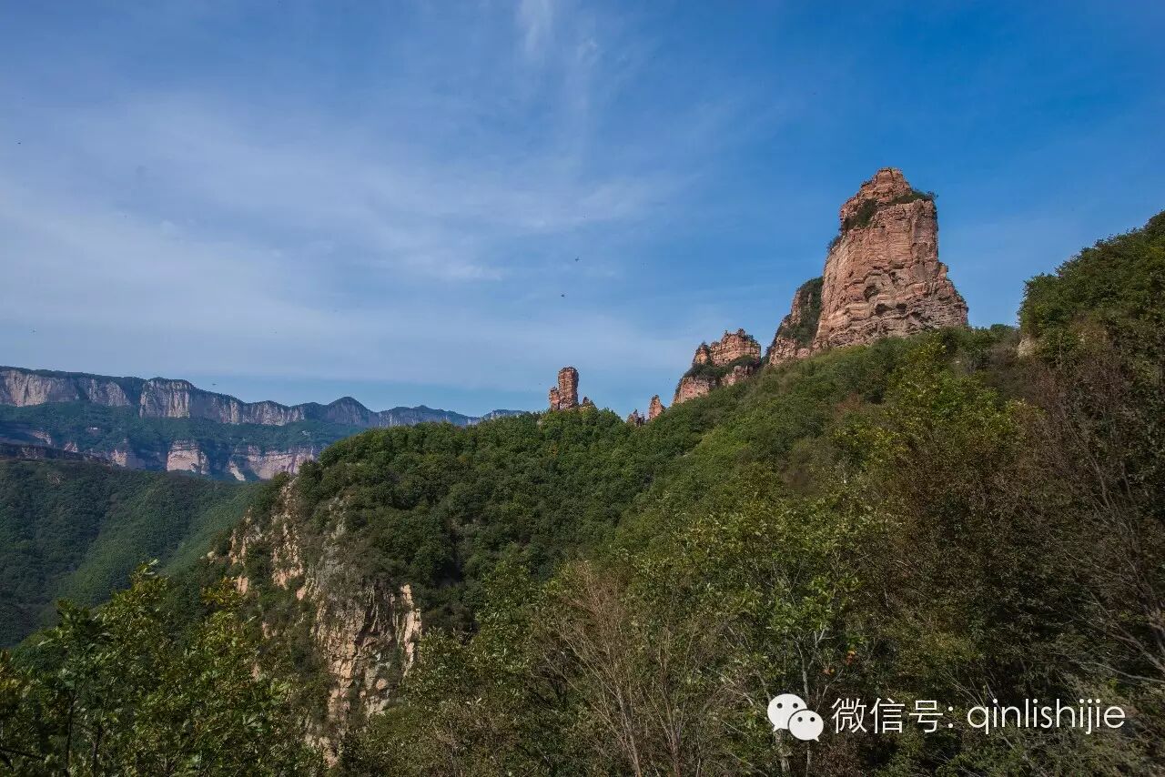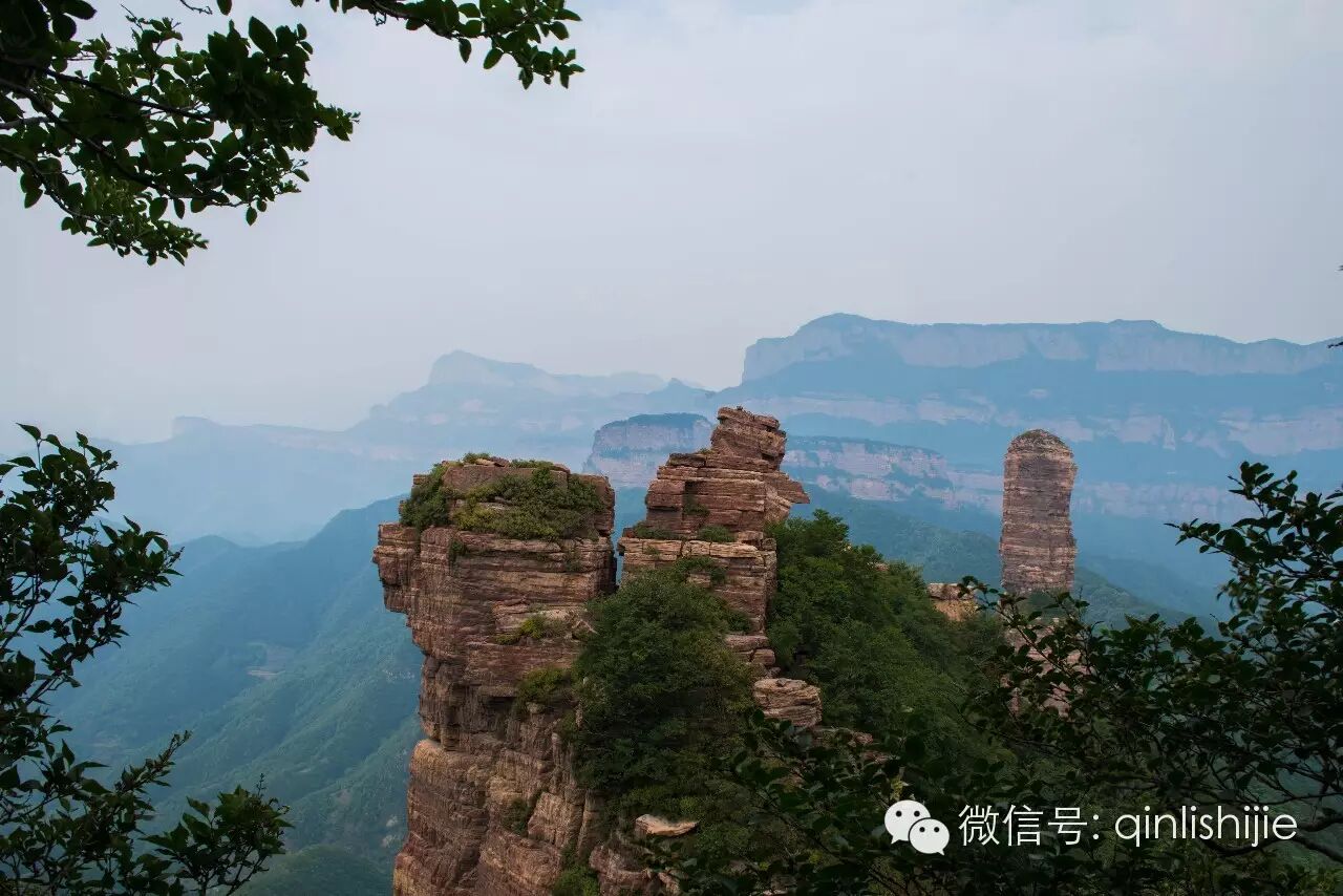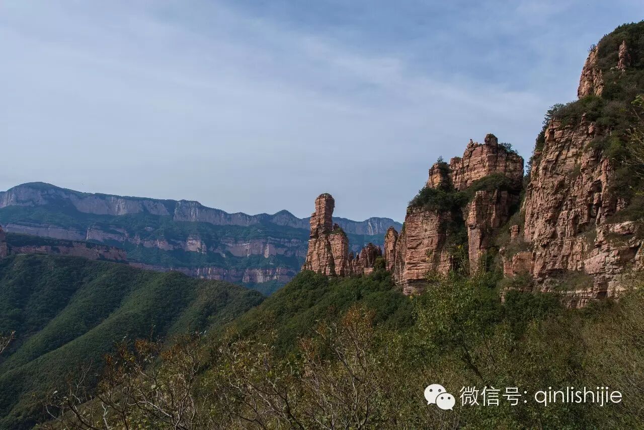 (从嶂石岩西南山往东看三县垴与九女峰风姿)