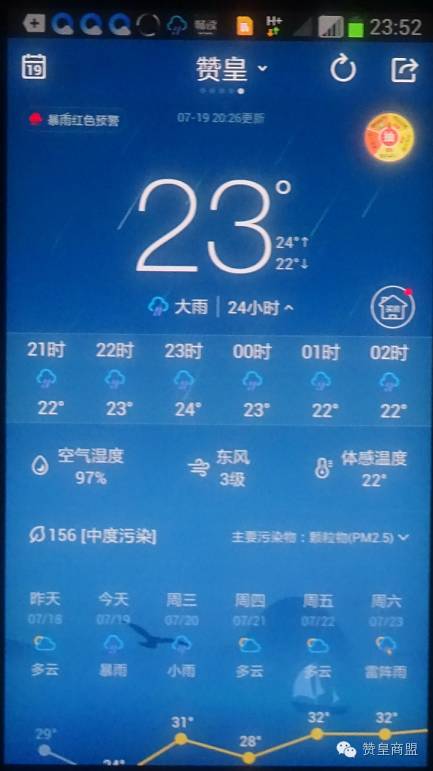 7月19日开始下雨了雨越下越大恶魔即将来临,雨雾笼罩着小村庄。晚上山洪爆发,住宿地洪水冲上了台阶。当地天气预报:暴雨红色预警