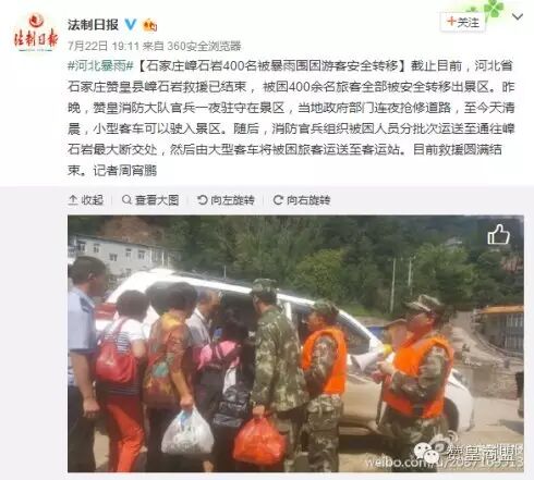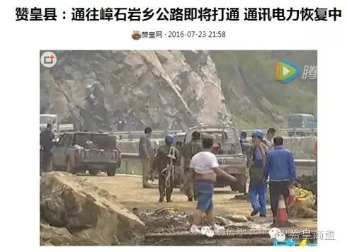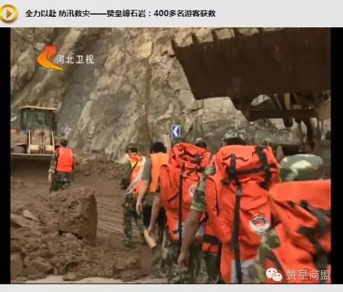 后 记 嶂石岩位于河北省会石家庄市西南100公里处的赞皇县境内,面积120平方公里。最高峰黄庵垴海拔1774米。山势层峦叠嶂,悬崖峭壁,素有“百里赤壁”,“万丈红峻”之称。地貌被专家命名为“嶂石岩地貌”。列入世界吉尼斯纪录的最大天然回音壁坐落在景区中部。 嶂石岩景观主要为“丹崖、碧岭、奇峰、幽谷”。雄伟的嶂岩三叠,奇秀的九女峰使人叹为观止;一线天、三秀峡、槐泉峪、乳泉洞、大天梯等一串串的自然景点令人神往。千年古刹槐泉寺、三栈胜境玉皇庙暨千佛碑、大王台、义军寨等人文景观是寻古探幽的佳地。1999年12月,建成的中国最大澳门回归长城纪念碑林,全长1000米,镶嵌999块碑,又为景区增添了一大人文景观。 嶂石岩自然生态良好,山麓、栈顶皆被乔、灌、藤、草所覆盖。植物计98科654种,是华北地区保护最好、品种最全的“天然植物园”。春日、山桃花、杜鹃花、丁香、玫瑰、山丹、绣线菊满山满坡,展蕊怒放;盛夏,郁郁葱葱,到处流泉飞瀑,云海、佛光奇异壮美;金秋,层林尽染,五彩缤纷,如火如荼;朔冬,雾松树挂,玉柯琼枝,冰柱擎天。嶂石岩景区雨量充沛,气候宜人,平均气温11.5℃,最热月平均气温22.1℃,高峡平湖,潺潺溪流,素有消夏避暑“凉岛”之称。春天,山花遍野;盛夏,树木遮日;金秋,红林尽染;冬季,冰凌晶莹。冬暖夏凉的气候,优美的环境,是人们游览观光、避暑疗养的理想之地。嶂石岩有柏油路直达;通讯方便,有程控电话和移动手机台。有高中档宾馆20余家。加上独具特色的家庭旅馆共3000余床位。长1200米,高差500米的封闭式客运索道,既可观光,亦能代步。解决了老弱游客“望山兴叹”,勿须涉足,便可一步登天。(摘自搜狗百科)这次与朋友相约本想去嶂石岩赏景、避暑,不成想到会遇上20年一遇的特大暴雨与山洪。所幸的是咱们人品好,虽遇大灾,但无大难,十几位朋友都安然无恙。特别是美女们,当晚听到隆隆的山洪声,惊魂不定,一夜未眠。事后都感,当晚那惊心动魄的情景,是一生难遇,也算是人生所经历的一大事吧。山洪后嶂石岩进出的道路中断,电力、通信中断,被困4天,也与家人失联了近3天。好在当地政府在党委的带动下,在解放军的大力支持下,很快就将道路打通了。于23日下午回到了北京。媒体报道下面再发几张灾情照片。