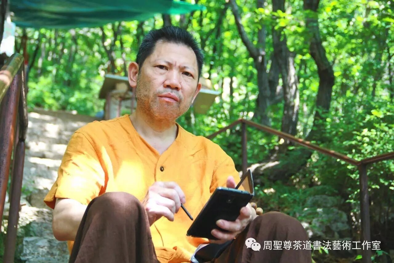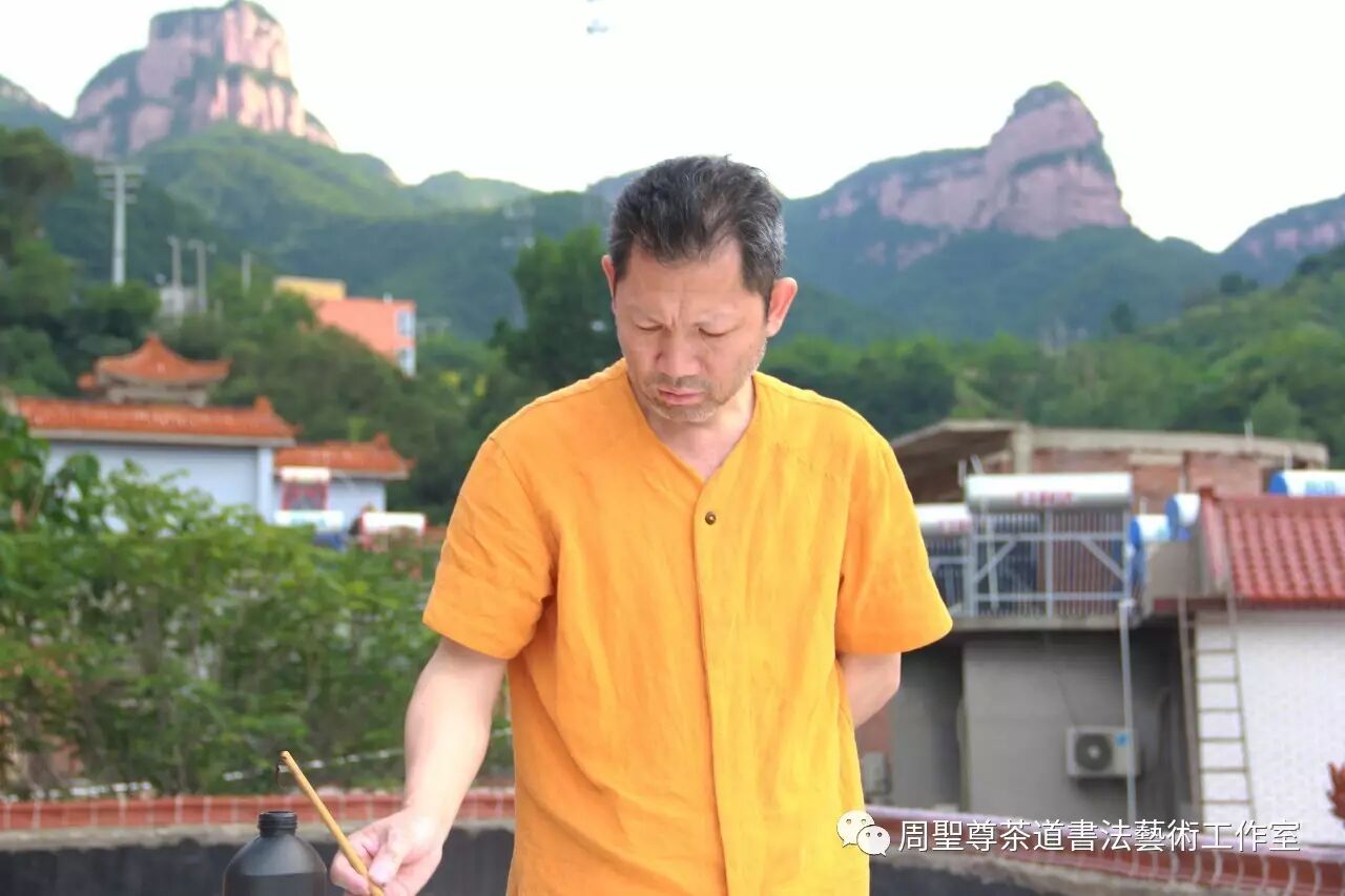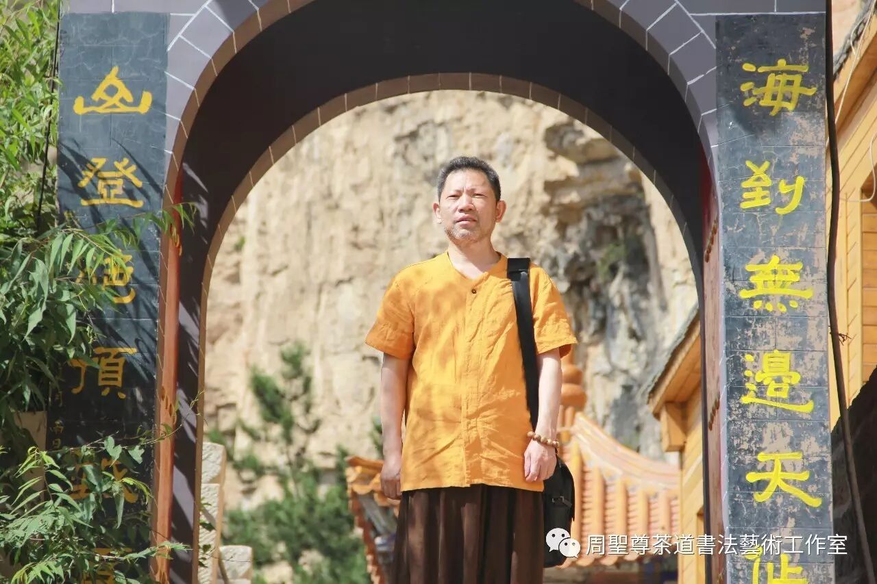自号玄通、印心阁主、虚源阁主,现为北京书法家协会理事、中国人民公安大学继续教育学院国学师、、、中国书画家国际交流协会书法专业指导委员会副主任、、中国公共关系协会艺术委员会客座教授等。2008年8月1日《中国新闻》北京奥运专辑以"茶界书法大使周圣尊笔歌奥运颂中华"(彩版通版)为题对其进行了全面报道。。2009年9月1日,,"三读书",即"爱读书、读好书、善读书"。2015年5月,随北京文联党组书记、常务副主席陈启刚等一同前往湖北十堰等地、河南南阳等地进行慰问、采风、文化交流活动。著有《南水北调------周圣尊诗联书法作品集》。周圣尊系《尚型》书法开拓者(开派人物),其代表作有:《鹰》(神鹰如山)、《龙》(画龙点睛)、《鹤》(一鹤排云)、《福》(弥勒佛)、《虎》(卧虎)、《蛇》(蛇图腾)、《云》(凤立潮头)等,可谓开风气之先也。。