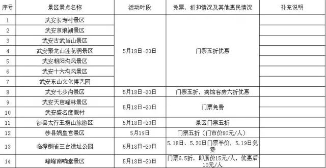 5月19日是中国旅游日,虽然不是法定节假日,但挡不住一些景区好客的热情。想出去玩耍的小伙伴千万别错过,河北100多家景区将限时推出优惠活动:门票6折、5折甚至免费,赶紧来看有没有你想去的吧!