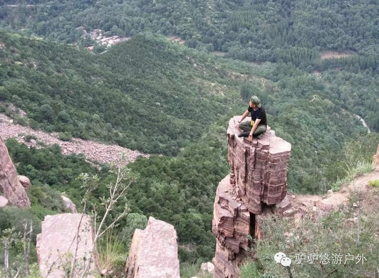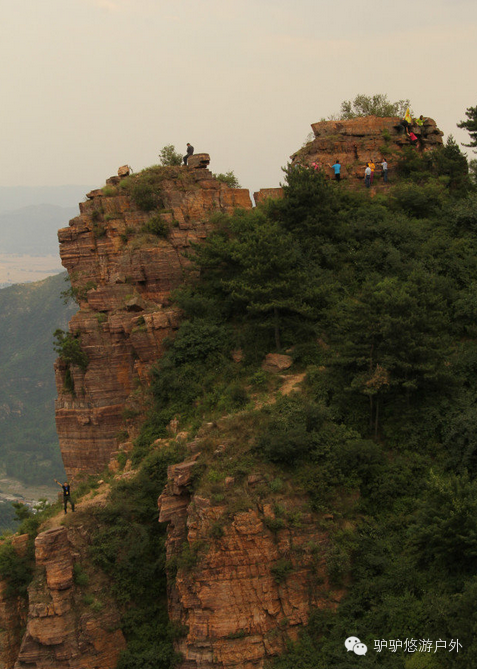 崖顶休整,放眼四望植被非常好,能看到郁郁苍苍里有很多的村庄,这地带是两省交界,自古就是商行古道,现在则是绝佳的驴行线路:往北到陈家院,也有不错的挂壁公路,还在修建水库,风光很好;往西就沿古道去了山西陵川;往南下山可直达万仙山风景区,再西南方向可穿越至山西的锡崖沟和王莽岭景区。