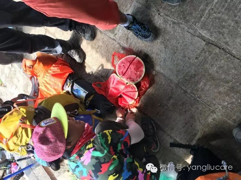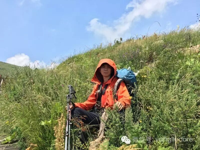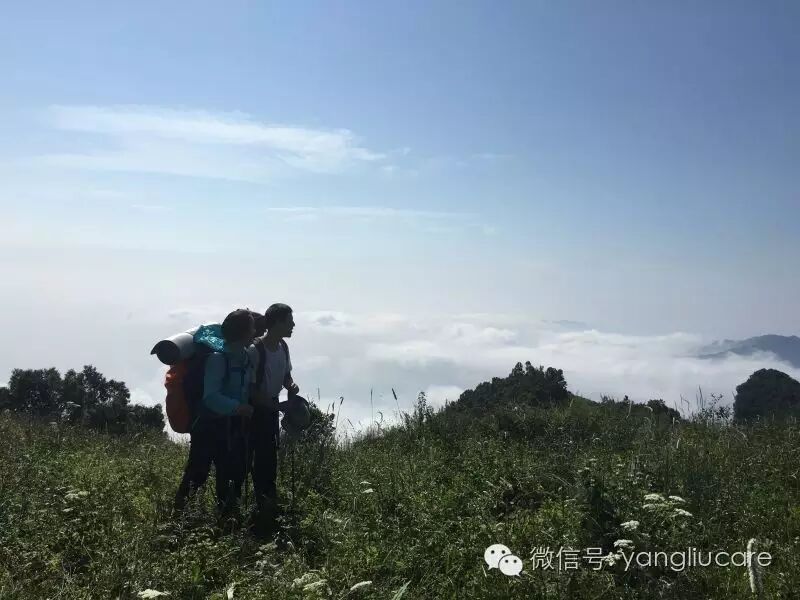 这是一群要多二有多二的欢乐组合,所以一路上我们充满了欢笑和歌声。队伍中,不得不提到的是一对让我敬佩和感谢万分的情侣,二费和李欣。他们从上海赶来,活动结束后,又连夜坐火车回上海。这是一次轻装的登山,他们却带着自虐的心态,背着扎营的重装来登山,登山的强度和难度不低,我在第三天上午爬南驼梁的时候,累的快不行了,这是我觉得最难的一段,一直持续的爬升,很多地方暴晒,在我最痛苦的上坡时,重装的二费把他的登山杖借给我用,帮我度过最难的路段。