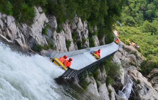 勇士漂段落差大,地势险,森林幽谷,盘龙险道,亿年巨石迷阵,百米勇士滑道,坠落百尺魂趋散,年轻十岁心渐宽;逍遥漂段景迷人,水流大,高山峡谷,二潭瀑布,荡涤愁丝云水岸,纵情弄水橡皮船,烟雨清梦境中现,景不醉人水亦欢。