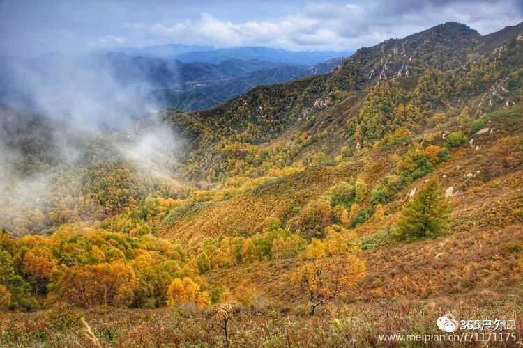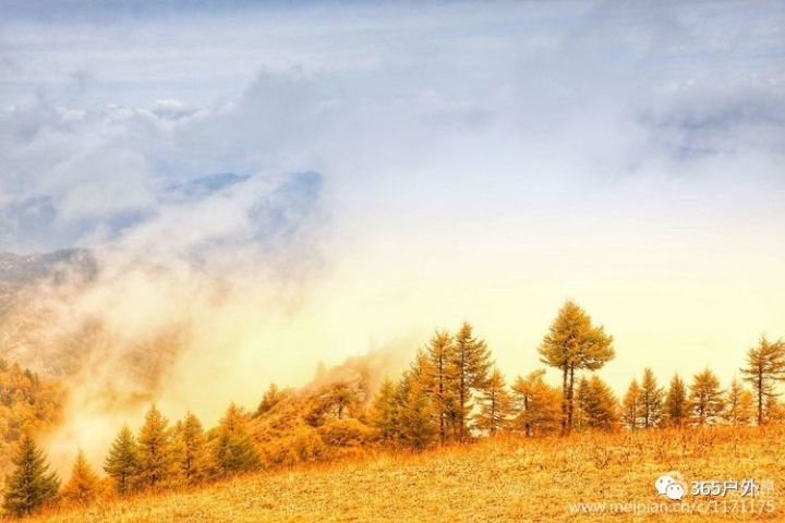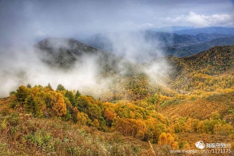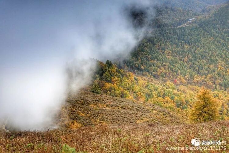 能用图片解说的风景,语言反而显得匮乏了。 365户外一行今天第一个进入驼梁景区,再次独享了绝美风景。季节更迭,山间碧绿金黄交相辉映,清泉轻抚鹅卵石,山顶雾霭绵绵不绝,如梦幻仙境。