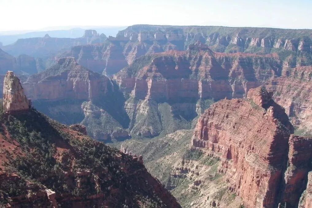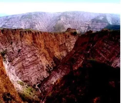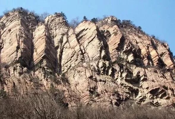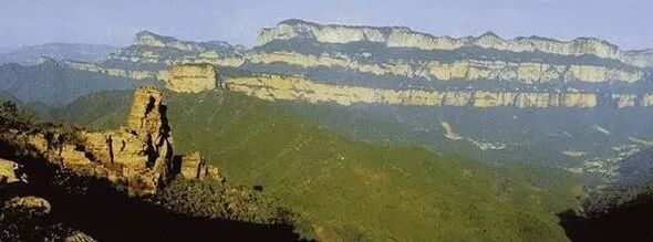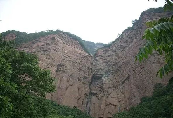 但是它跟丹霞地貌又不一样,丹霞地貌整个岩层都比较松软,所以有时候是一层层从外往里剥落,嶂石岩地貌则是从下往上塌,然后就往后面退。