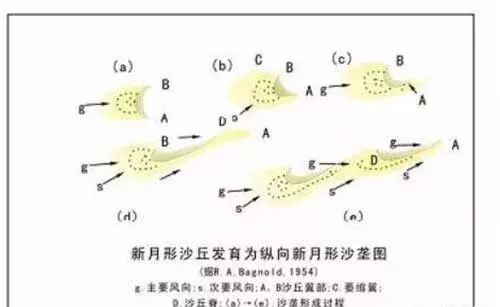 沙源丰富的情况下形成新月形沙垄和纵向沙垄。