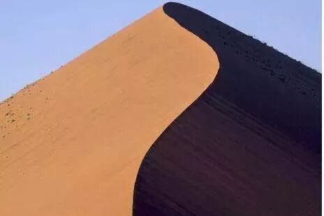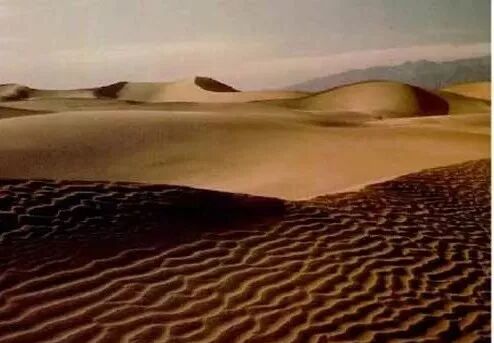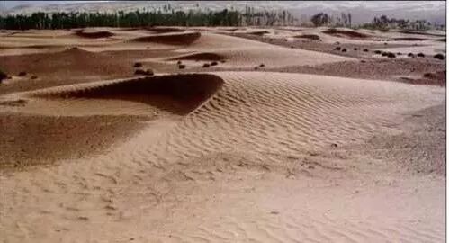 干旱气候条件下,风沙流在前进过程中遇到障碍物,在背风坡发生沉积,便堆积成不规则的“沙山”即为沙丘。