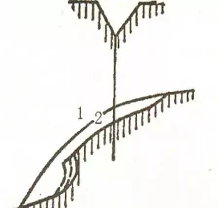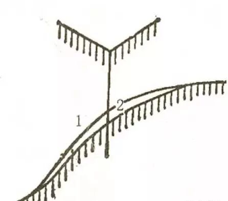 初期阶段的冲沟是指由片流汇合而成细流切割坡面而成的细小沟谷,通常称之为两裂,在地貌学上称为细沟。其最主要特征是横剖面呈浅V字形,沟的纵剖面基本上与所在斜坡的坡面一致。