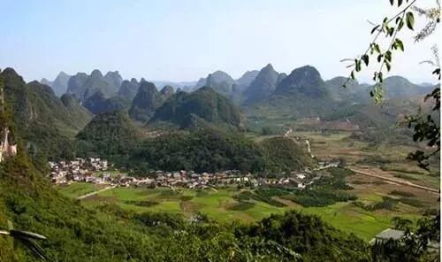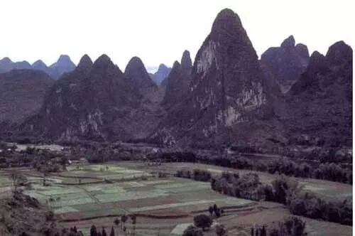 溶蚀洼地:是一种面积比较大的圆形或椭圆形的封闭形洼地。它的四周多被峰林围绕 。