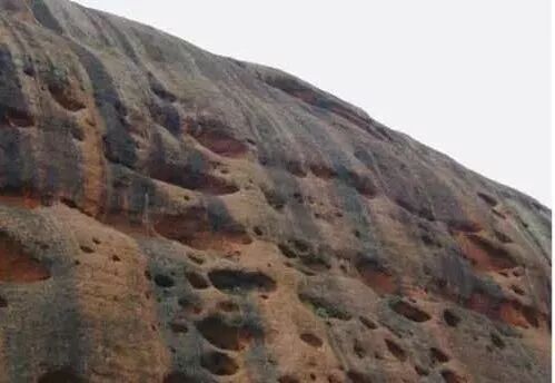 在干旱沙漠荒漠地区的花岗岩体,因气候干热,,昼夜温差大,使岩石产生热胀冷缩,加上强大的风力吹蚀,使花岗岩体表面形成极不观则的蜂窝状洞穴,成为这种地貌的景观特征。
