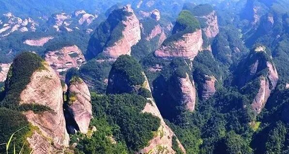 我国著名的丹霞地貌名山有广东的丹霞山和金鸡岭、湖南新宁崀山、福建的武夷山、福建连城的冠豸山和永安的桃源洞、安徽的齐云山、江西的龙虎山、河北承德磬锤峰等都属于这种地貌。