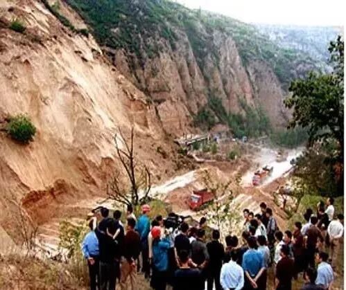 [滑坡裂缝] 由于斜坡滑动造成地表开裂而成。