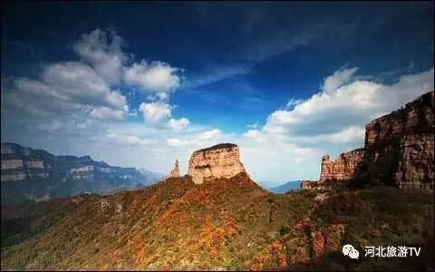 由红色石英砂岩构成的崖壁,相对高度达600米到700米,是太行山地乃至整个华北地区新近纪以来的地貌演化和山体强烈隆升的地质记录,成为记载太行山第四纪强烈抬升的历史丰碑。