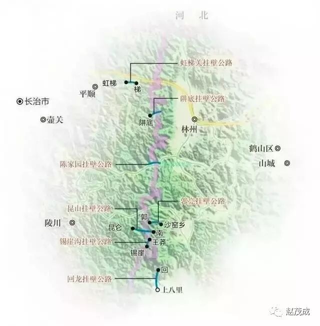注:亮点有鸡冠梯,十字岭,锡崖沟挂壁,王莽岭,昆山挂壁