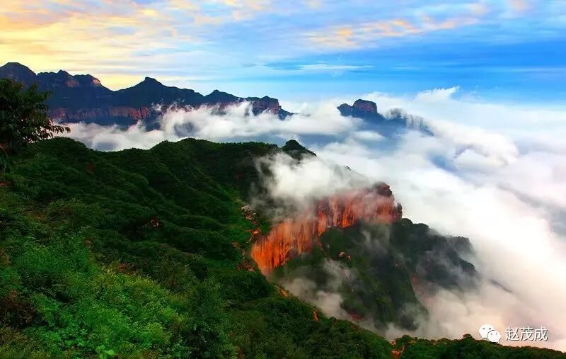 陡峭的崖壁和飘渺的云海,地形对比明显,视觉冲击力大,让每一个看到南太行的人都忍不住前往。因为属于中国地势第二台阶交界地带,断裂活动集中,而长期而复杂的锻炼构造运动正是形成南太行奇特地貌特征的原因。