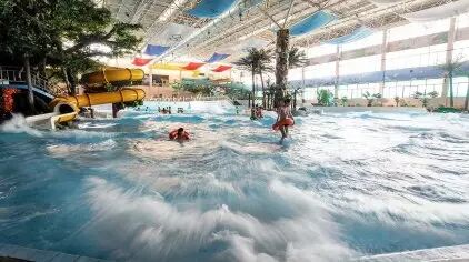 看,两米高的海浪欢腾着向你奔来,汹涌的海浪可磨练一个真正的水手,正如您命运风帆的绳索永远掌握在您自己的手中一样。勇敢!向前!拼搏!整个戏水大厅绿草如茵、竹光倒影、青藤绕榕、椰林葱葱,加之钟乳石柱等景观构成了“迪斯尼”水上乐园。