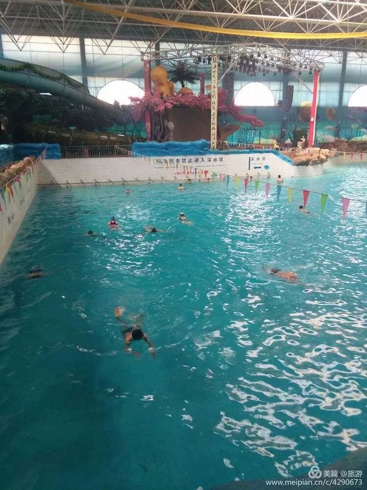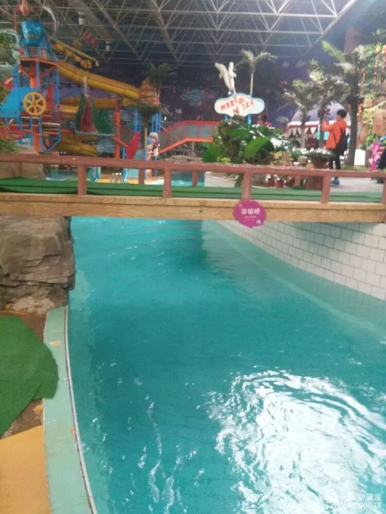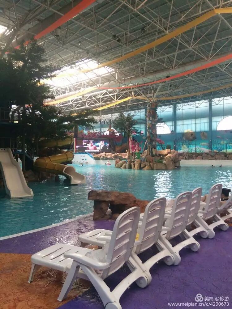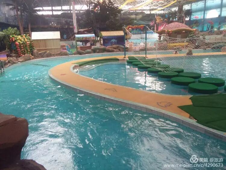 万余平方米的戏水大厅,分儿童戏水区、成人戏水区、按摩区、造浪区及漂流河。为了满足冬泳的需要,戏水大厅设置了恒温设备,保持了室温30℃,水温27℃;为了解决水质问题采用了24小时不间断循环水消毒,使水的纯净度达到国际标准;另外特设了一次能容纳200余人的快餐厅,以及桑拿、保健、按摩等设备设施