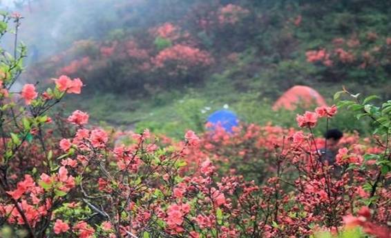 4-5月份是五岳寨山杜鹃盛开的时节,一山山艳如红霞的红杜鹃,一坡坡洁白如雪的白杜鹃,美不胜收。支帐篷于杜鹃花下,别有一番乐趣!