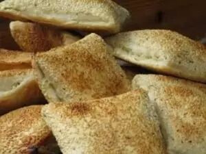 灵寿烧饼,用料主要有小麦粉、鸡蛋、棉油、芝麻、精盐制作,小麦粉加水和好略硬,用小面杖擀成薄片加油再折叠再擀,多次加油擀薄折叠,层层叠得成长方形一面再洒满芝麻,另一面贴在倒扣的缸炉里面,经过20多分钟的烤制,终于熟了,烤得十分好看的那种金黄颜色,用手拿起来感觉很有质感,尤其是刚出炉的热腾腾的烧饼更是香气升腾,烧饼表面的芝麻散发着幽香,饼分多层,每层薄如蝉翼,香酥爽口。
