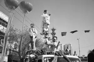 慈峪抬阁产生于盛唐时期正月十五灯会,距今已有一千多年历史,原叫散蜡,是一种祭祀活动。抬阁分上下两部分,底部扎绑后装饰成花车形状,四周摆上各种盆景、盆花,布置多种花灯,花车中间巧妙伪装三根铁棍,最高的四米有余,两旁的稍低一点,让三个十一二岁的女童或男童装扮成戏剧人物。