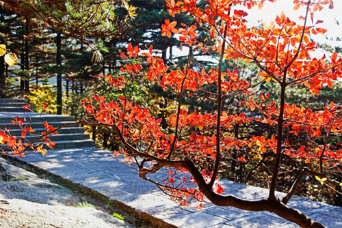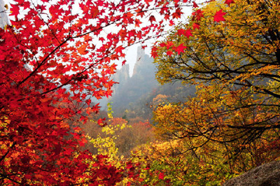 赏叶时节:最佳观叶地在主峰景区山道两侧,十月十五日―十一月十日为盛红期
