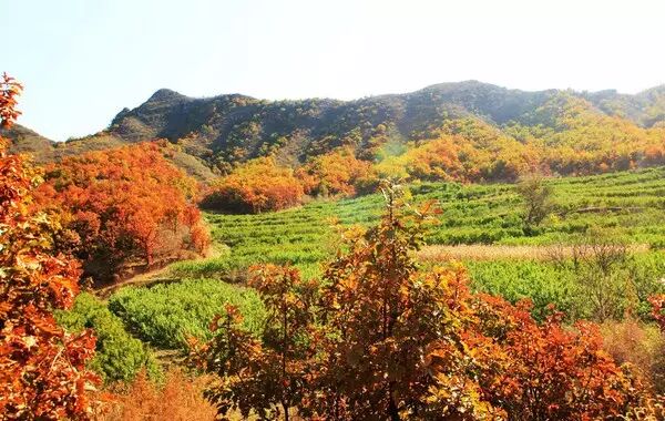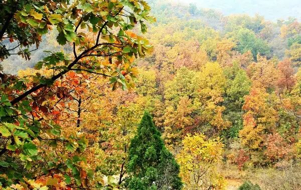 天桂山:山上的黄栌、栎树、楸树、橡树和丹枫等由绿而黄,由黄而红,直至万山红遍,层林尽染。