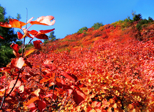 赏叶时节:最佳观叶地在白草畔,十月中旬―十一月中旬为盛红期