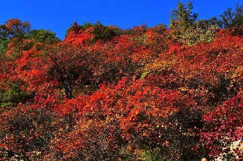 云梦山风景区位于邢台县冀家村乡,那里的红叶比较突出的特点是与水结合在一起,登山、赏瀑、看红叶,别有一番曼妙的感觉。此时去云梦山看红叶,一定不要进峡,沿着鬼谷子沟前行看叶,红叶不仅更红而且连成一片极为壮观。