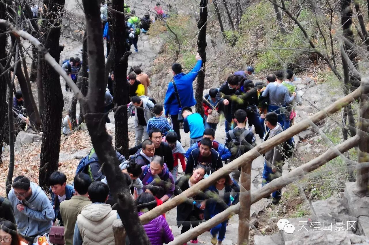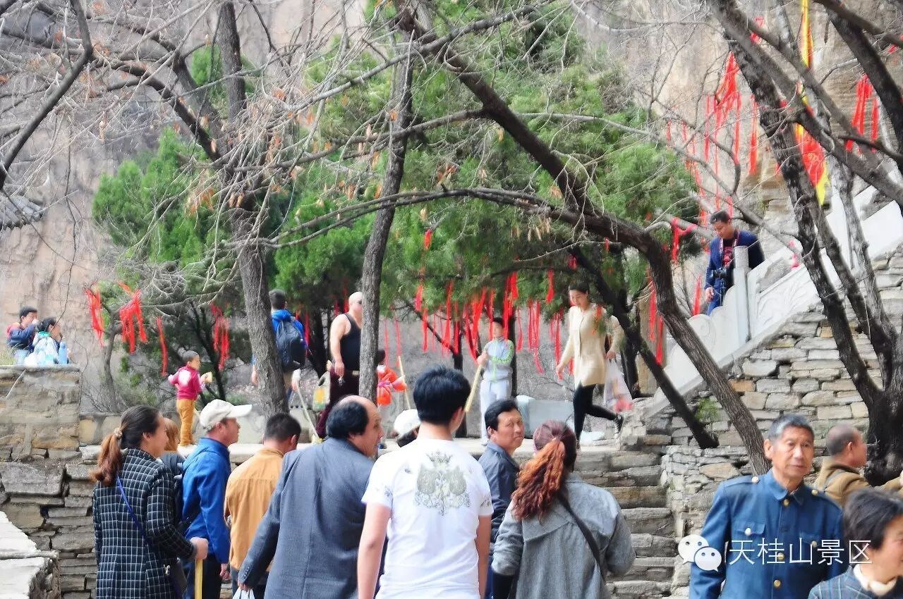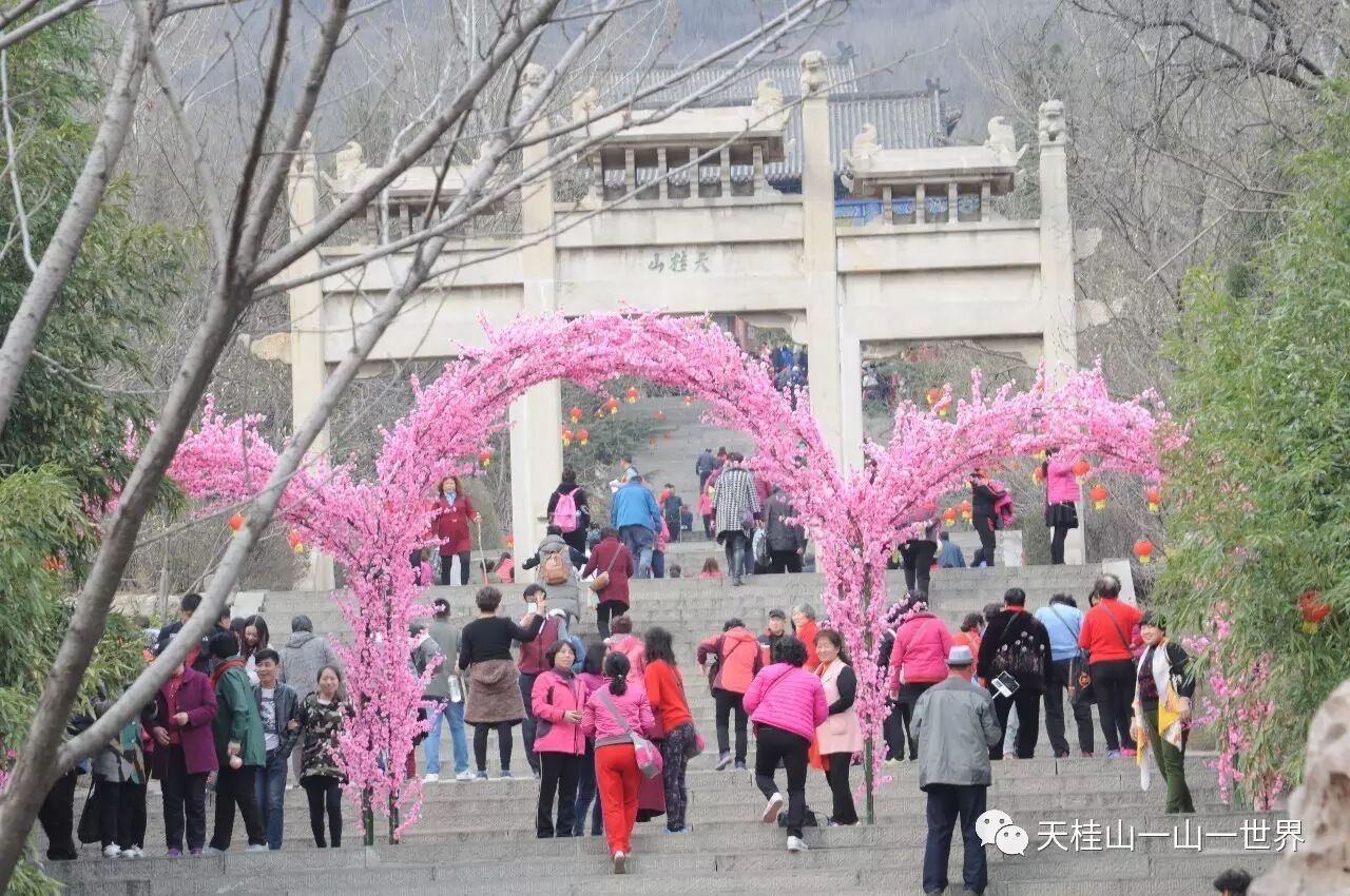 三生三世十里桃花, 3月11日、12日,天桂山桃花节期间,连续两天天桂山日接待量高达万人,人们成群结队的来这里赏花踏青,天桂山素有“燕赵春来第一景”之美誉,这第一景指的就是天桂山的桃花,现在,山上的桃花朵朵绽放,预计这一周是最佳赏花时节。以下是图片实况: