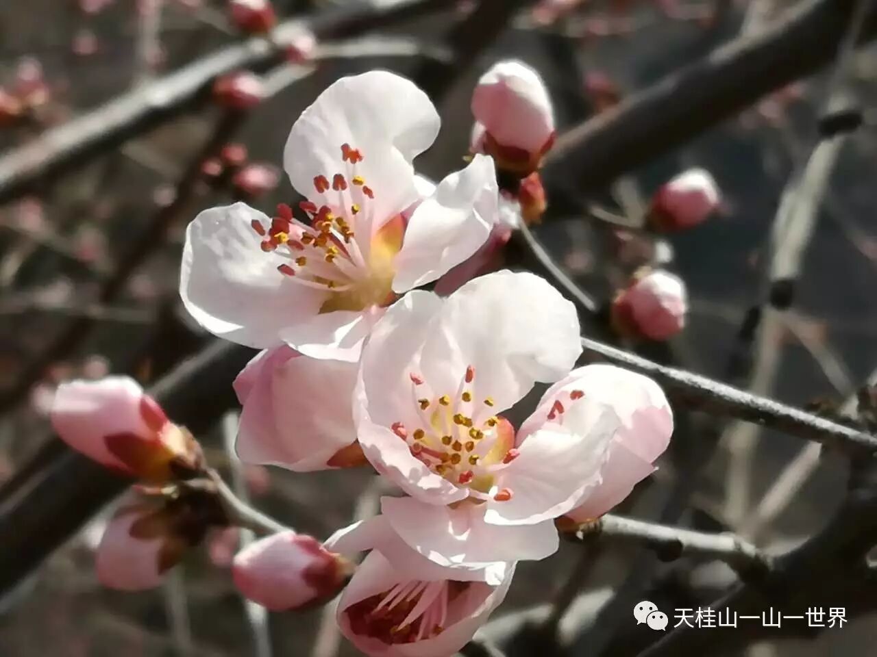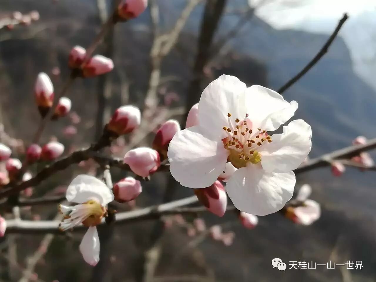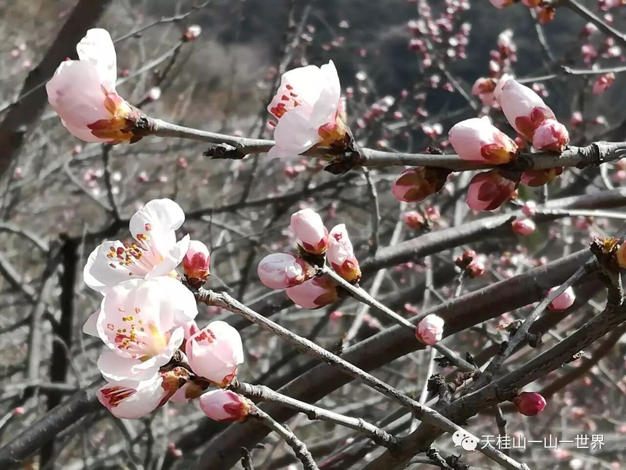 三生三世十里桃花, 3月11日、12日,天桂山桃花节期间,连续两天天桂山日接待量高达万人,人们成群结队的来这里赏花踏青,天桂山素有“燕赵春来第一景”之美誉,这第一景指的就是天桂山的桃花,现在,山上的桃花朵朵绽放,预计这一周是最佳赏花时节。以下是图片实况: