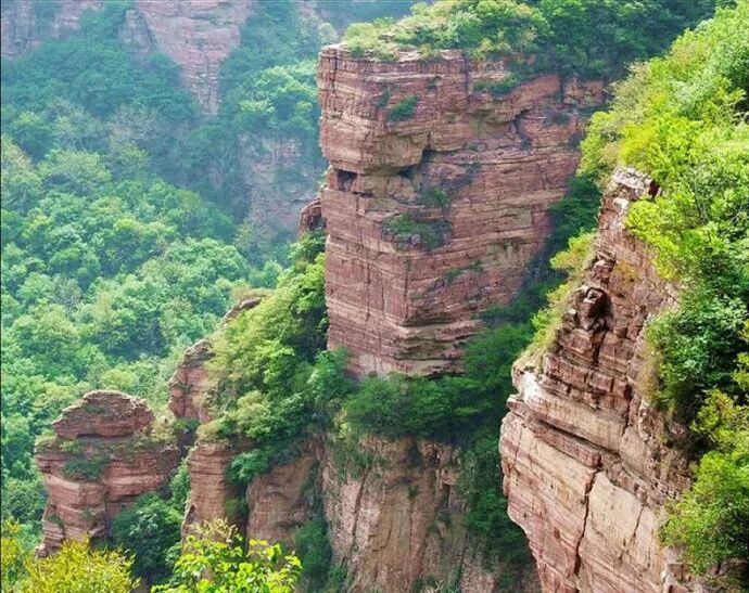 嶂石岩,国家AAAA级风景名胜区,位于石家庄西南的赞皇县境内,距河北省省会石家庄市区约110公里,是太行山森林公园精华所在。景区面积约120平方公里,最高峰黄庵垴海拔1774米。景区地貌经由国家旅游、地质部门鉴定为“嶂石岩地貌”。以嶂石岩命名的嶂石岩地貌,和丹霞地貌、张家界地貌并称为中国三大旅游砂岩地貌。