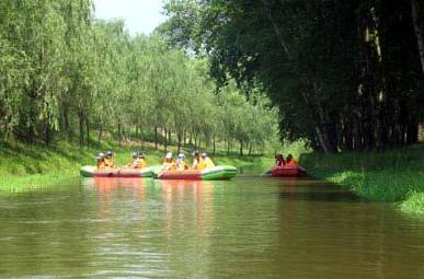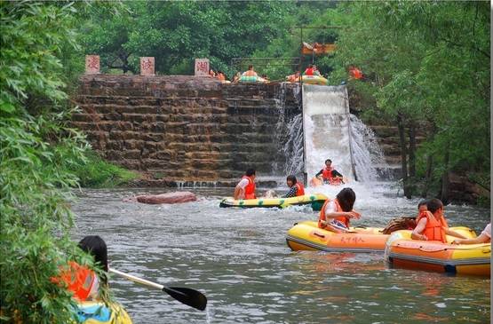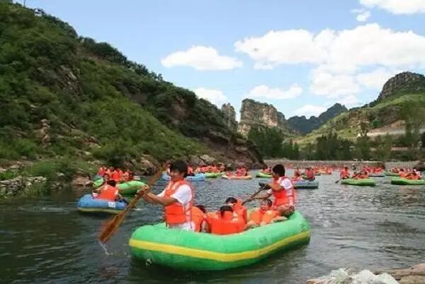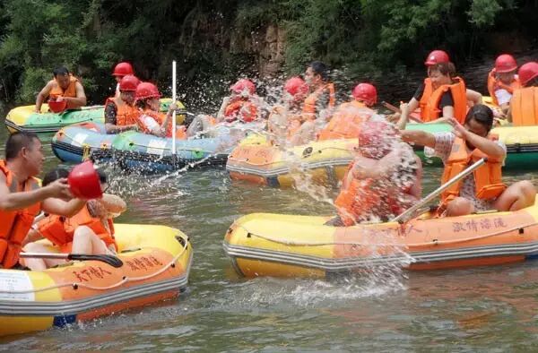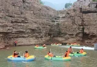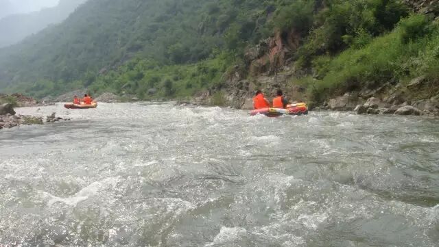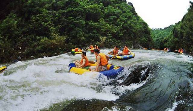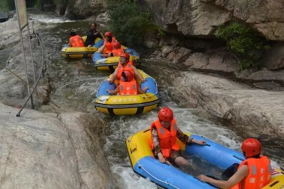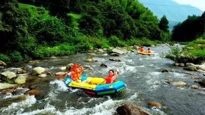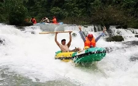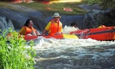 3、通过险滩时应紧抓安全绳,收紧双脚,;在下急流时,艇具请与艇身保持平衡,并抓住艇身内侧的扶手,后面一位身子略向后倾,双人保证艇身平衡并与河道平行,顺流而下。