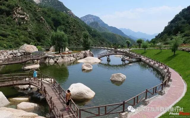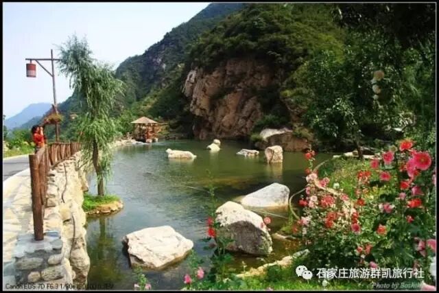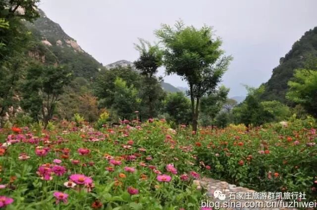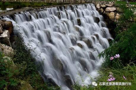 灵寿花溪谷风景名胜区,漫山花溪谷位于石家庄西北110公里太行深山区,西北距五台山50公里,西南距西柏坡40公里,海拔800-2150米,毗邻五岳寨国家森林公园,是驼梁景区的必经之地,全长12.8公里,总面积20平方公里,与五岳寨主峰相通相连。谷内森林、山泉、草原、花园等自然资源得天独厚,10000亩原始次生林浓密葱郁,两条连天瀑布似白练垂空,顶端亚高原草甸广阔无垠,20万平米山地花园明媚光艳,一条清溪流贯全谷,繁花点缀溪旁,“花溪谷”故此得名。