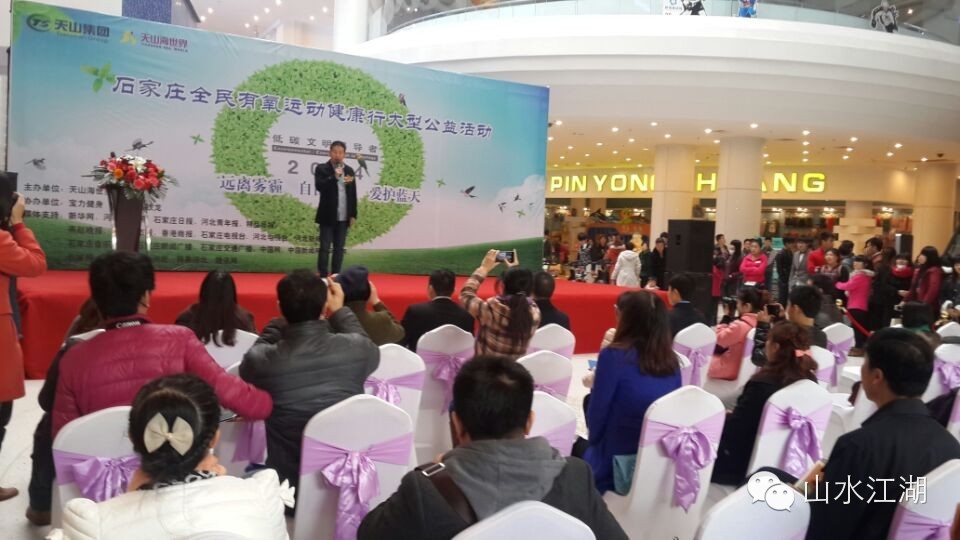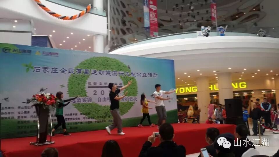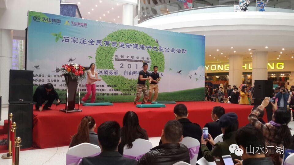 2014年11月8日上午,天山海世界举办了一场别开生面的公益活动——“石家庄全民有氧运动健康行”。自然环境日益恶化,雾霾天气已严重影响到人们的工作、生活,危害着人们的身心健康。保护环境、节能降耗、全民健身已经成为每一位民众关注的焦点,作为国家AAAA级旅游景区----天山海世界积极响应号召,倡导绿色、环保、健康的生活理念,特别举办了本次公益活动。
