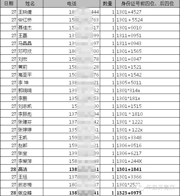 3、身份证信息必须与下表信息一致,如有事不能前往,可让朋友拿你身份证前去领票游玩。(下表中没有显示的报名者即为报名不成功,不享受2元优惠)