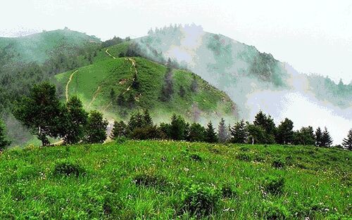 驼梁雨后,雾气从山涧腾出,别有一番仙境