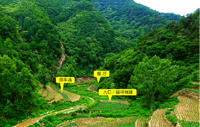 雍野处于中国太行山脉深处驼梁的一条私密溪谷内,两侧丛林密布,溪水潺潺。