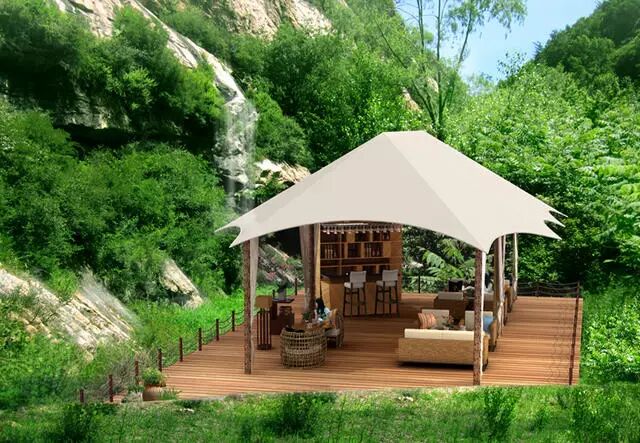 帐篷酒店对原有自然环境要求高,更多借景如室,融入自然。