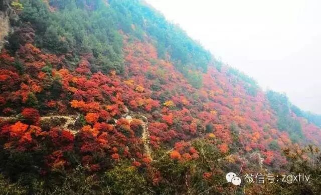 云梦山风景区位于邢台县冀家村乡,那里的红叶比较突出的特点是与水结合在一起,登山、赏瀑、看红叶,别有一番曼妙的感觉。此时去云梦山看红叶,一定不要进峡,沿着鬼谷子沟前行看叶,红叶不仅更红而且连成一片极为壮观。