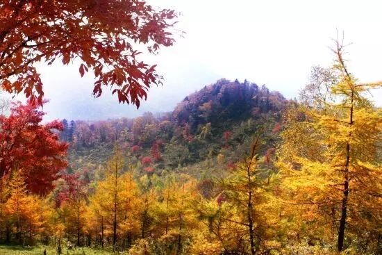 祖山原始森林红叶呈现出的是斑驳的杂色,黄、褐、红、紫,各种颜色杂呈,蔚为壮观。山势跌宕,峰峦陡峻。以山、水、石、洞、花五奇著称,是一处具有一定历史文化内涵的山岳型自然风景区。秋季红叶满山,野果飘香,被誉为“塞北小黄山”。,欣然留下了:“祖山老岭,山清水秀,石奇林密,气清云飞”的题辞。