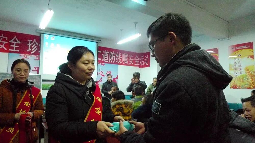 “《煤矿安全规程》中‘四不伤害’指的是什么?瓦斯爆炸的条件是什么?”,在安全宣传现场,协管员向一线职工现场提问岗位应知应会、典型事故案例,以及安全质量标准化、安全精细化管理等方面的知识,职工踊跃抢答。凡是回答正确的,由女工安全协管员送上洗发水、牙膏等礼物,同时送上一条红腰带和一句安全祝福语。“安全在你的脚下,安全在你的手中”,“安全工作无小事,细节决定成败”,“上标准岗,干标准活,一举一动规章守纪”,“每天学习一点,每天巩固一点,每天提高一点”,“遵章守纪,争做安全放心人”,协管员们一句句温暖的叮嘱,感动着一线职工的心。对回答不全面的,女工们告知正确答案,并叮嘱着:“师傅,安全知识很重要,安全基础要打牢”。通过活动的开展,进一步增强广大职工“学业务、懂标准、练技能”的积极性,提升职工岗位标准作业技能,促进管理制度、操作规程、作业流程真正落实在生产现场,坚决防止触碰安全红线,用亲情的力量筑牢矿井安全生产基础。