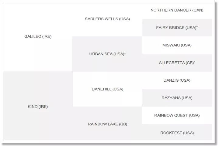 Although Galileo is a grandson of NORTHERN DANCER, much of his success has been with mares with Northern Dancer blood, with the DANZIG branch achieving extraordinary success. His 29 Group winners out of DANEHILL mares feature the brilliant Frankel, the champion two-year-old Teofilo, the King George winner Highland Reel……(摘自 coolmore.com)