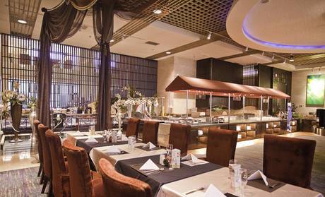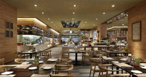 整个自助餐厅采用欧式布局,宽敞明亮,能同时容纳800余人就餐。