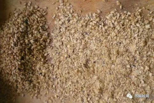 将芝麻淘净,用锅炒至焦黄色,放凉擀成面,稍放一些食盐。妇女坐月子常吃小米饭撒芝麻盐。