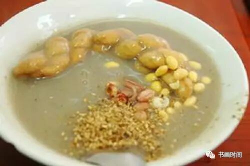 以豆类或山药类做成的粉芡加水在锅内加热搅拌而成,加芥茉、食盐、醋等调料,夏天吃败火解暑。