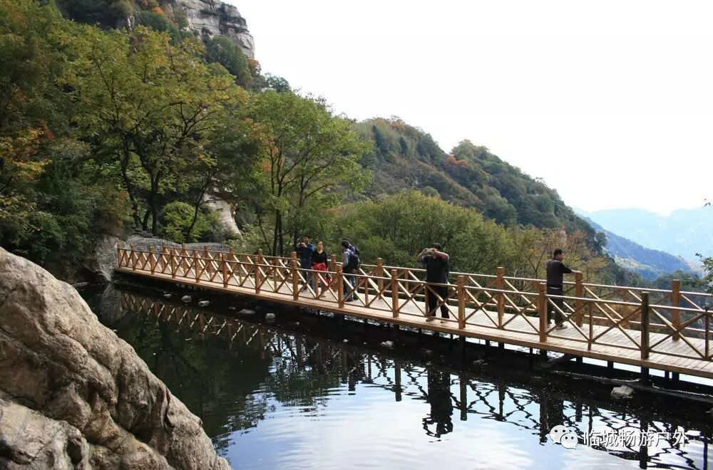 五岳寨大环环穿线路,全程23公里,徒步约7~8个小时。喜欢休闲的朋友可以走燕赵第一瀑——通岳峡小环,徒步约4小时左右。