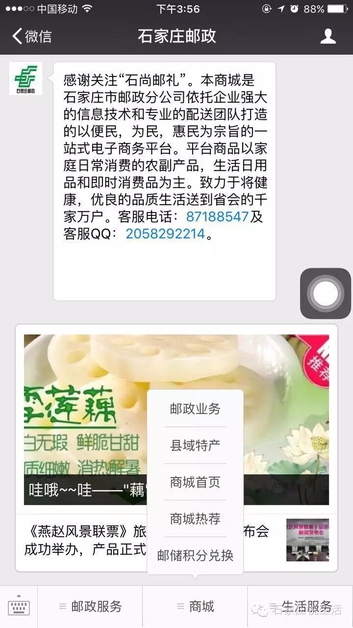 一是通过邮政的官方微信——石家庄邮政(sjzpost),在微商城购买。