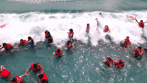 15000平米的水上乐园,游泳、冲浪、玩漂流……各种惊险刺激好玩的水上运动项目。你都可以在这里找到。