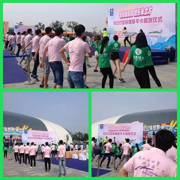 与此同时,天津天山海世界米立方,联合津南区旅游局、小站镇政府举行了 “全民健身日、畅游米立方”大型公益活动暨米立方全民健身年卡首发仪式,米立方员工组成的40人的啦啦操方队表演诠释了全民健身的意义,接着精彩绝伦的瑜伽,异国情调的非洲舞,靓丽的泳装秀等等赢得了阵阵掌声。天津媒体记者团、资深健身教练、游泳健身爱好者等几千人,畅游了米立方,体验了有氧健身、漂流冲浪、亲子戏水和舒适SPA。